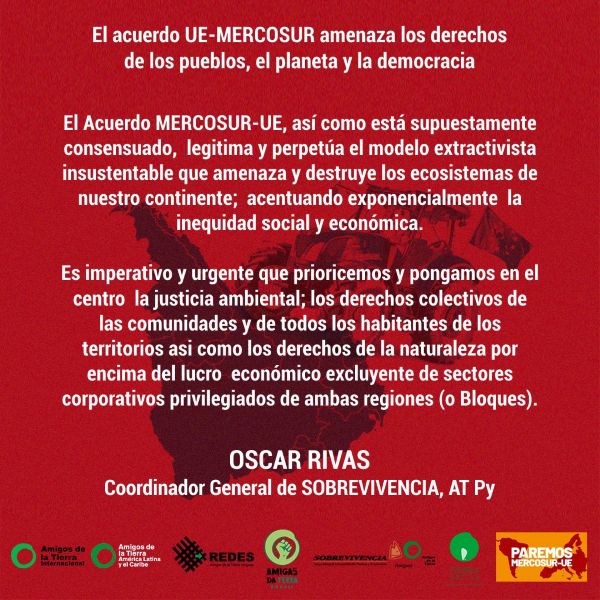 Es hora de decir NO al Acuerdo UE-MERCOSUR, y de impulsar modelos de integración alternativos que prioricen la vida, la dignidad y el cuidado del planeta.